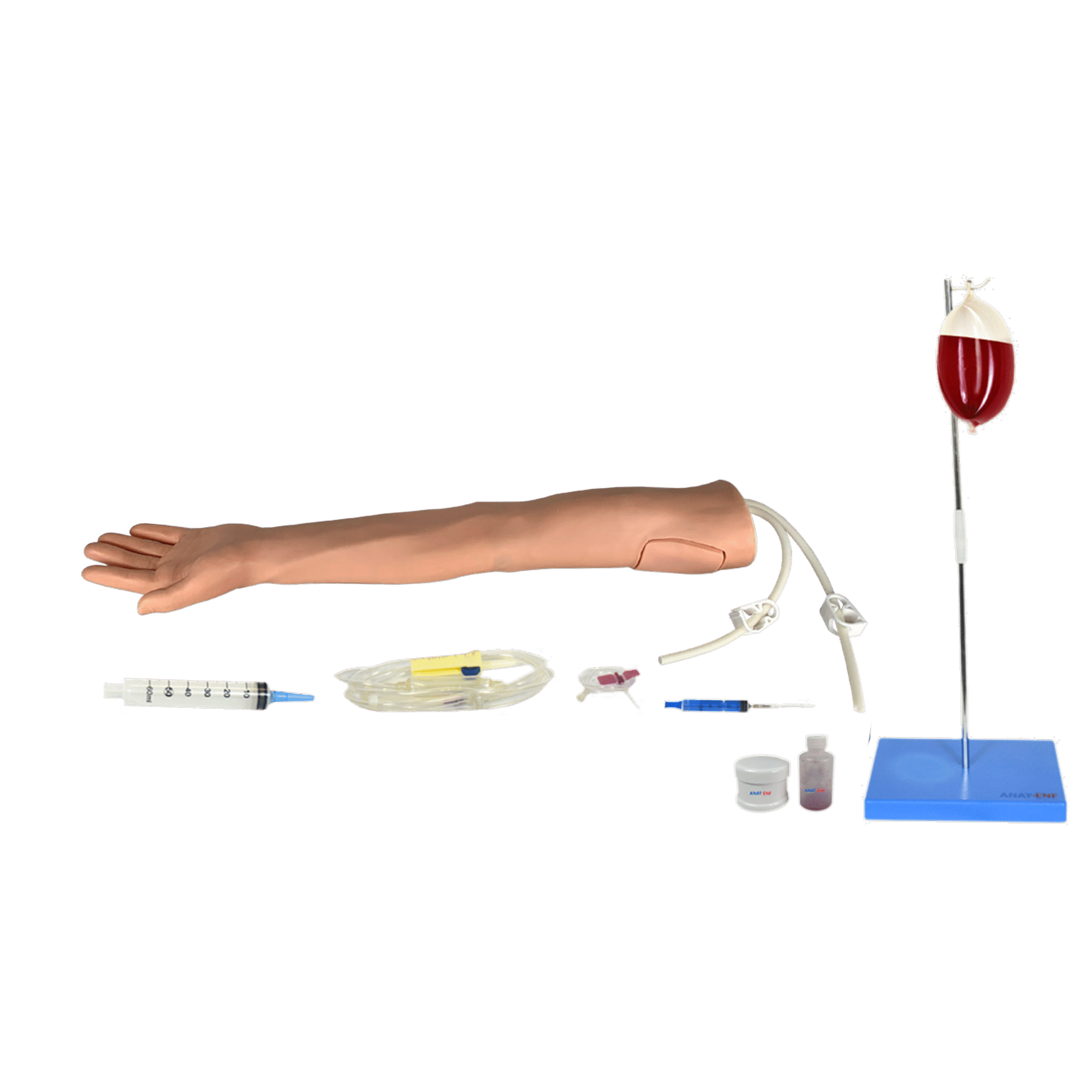 Simulador de braço adulto com caraterísticas anatômicas realísticas, evidencia veias periféricas do antebraço e dorso da mão para treino de injeção endovenosa. Dispõe de músculo deltoide para treino de aplicação de injeção intramuscular. Simulador ideal para cursos de medicina, enfermagem, cursos técnicos de saúde e no aperfeiçoamento profissional. Confeccionado em PVC e poli elastômero.